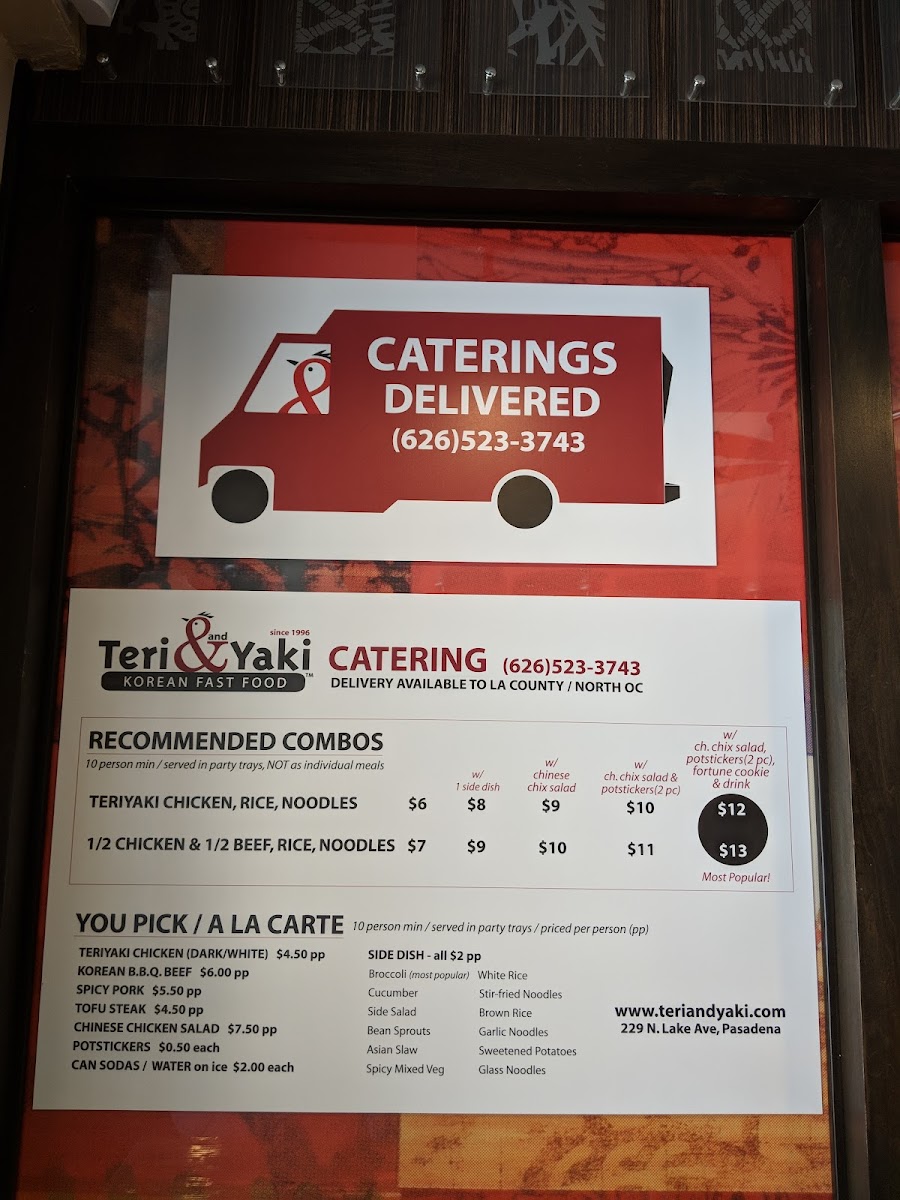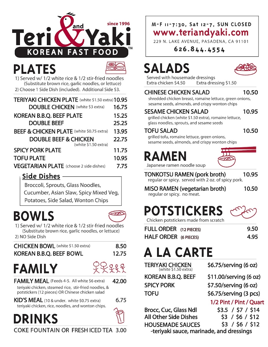 Teri & Yaki, located in the heart of Pasadena, offers a delightful fusion of contemporary Asian flavors. The menu features a range of vibrant bowls and salads, highlighting their Korean BBQ expertise.